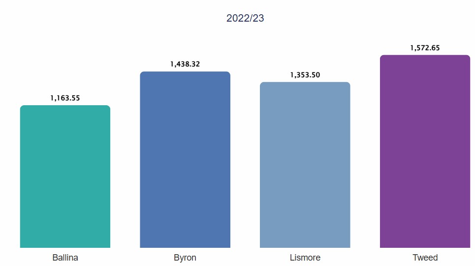 This graph shows an average residential rate comparison from the 2022/23 Financial Year. This was sourced from the Office of Local Government's Your Council comparison tool. Find out more at yourcouncil.nsw.gov.au/